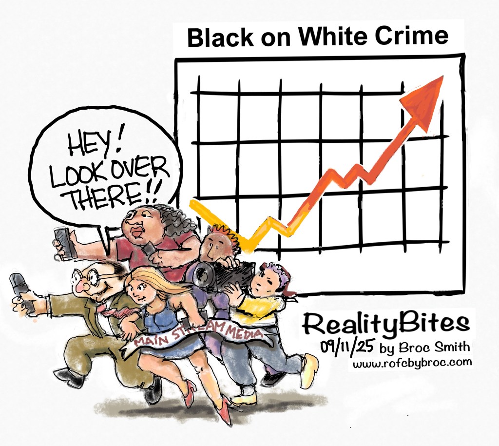 Black on White Crime Posted bybrocsmith01September 10, 2025Posted inUncategorized Share this: Share on X (Opens in new window) X Share on Facebook (Opens in new window) Facebook Like Loading... Related Published by brocsmith01 Designer by trade, theme parks and resorts (China 22 years), now in the States drawing political cartoons. View more posts