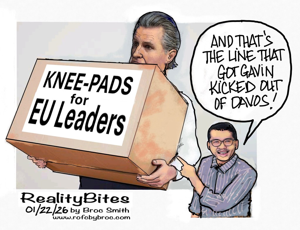 Gavin Blue It in Davos Posted bybrocsmith01January 21, 2026Posted inUncategorized Share this: Share on X (Opens in new window) X Share on Facebook (Opens in new window) Facebook Like Loading... Related Published by brocsmith01 Designer by trade, theme parks and resorts (China 22 years), now in the States drawing political cartoons. View more posts