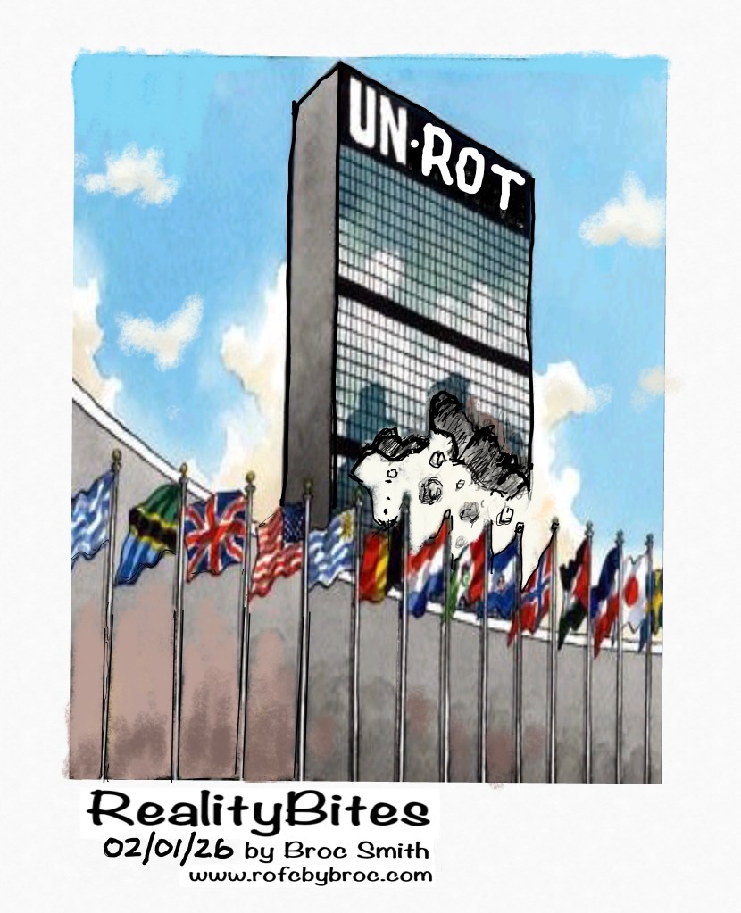 The UN is Failing Posted bybrocsmith01January 31, 2026Posted inUncategorized Share this: Share on X (Opens in new window) X Share on Facebook (Opens in new window) Facebook Like Loading... Related Published by brocsmith01 Designer by trade, theme parks and resorts (China 22 years), now in the States drawing political cartoons. View more posts
