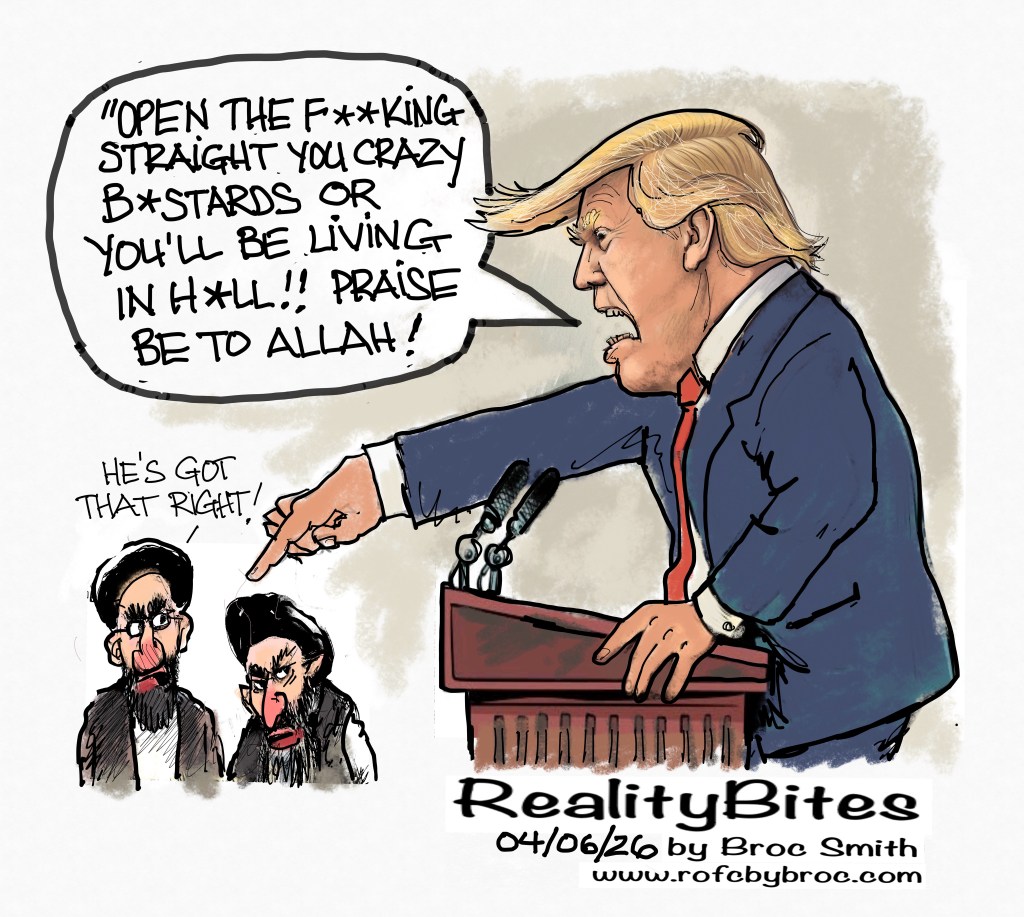 But Do They Listen? Posted bybrocsmith01April 6, 2026Posted inUncategorized Share this: Share on X (Opens in new window) X Share on Facebook (Opens in new window) Facebook Like Loading... Related Published by brocsmith01 Designer by trade, theme parks and resorts (China 22 years), now in the States drawing political cartoons. View more posts